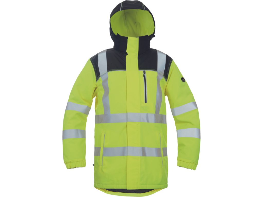 - zateplená zimná HI-VIS bunda s odopínateľnou kapucňou
