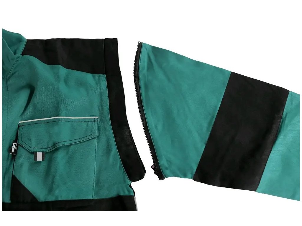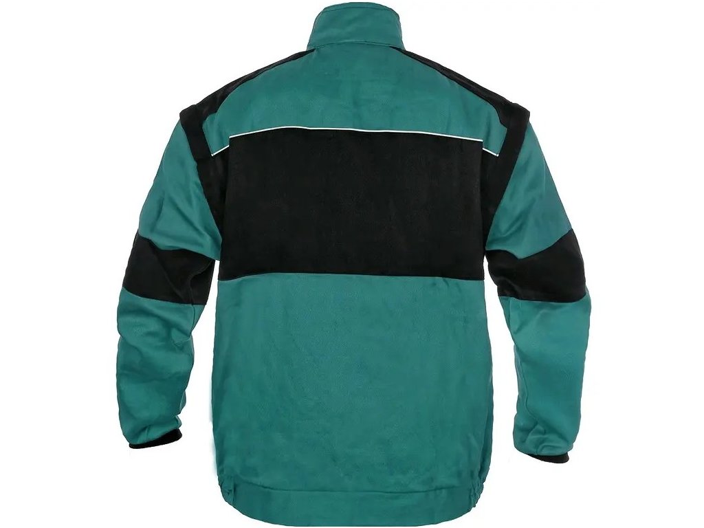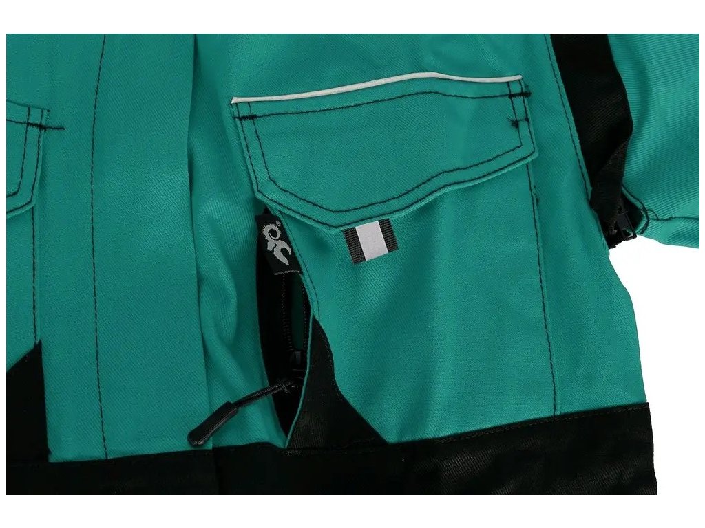 -Odopínacie rukávy s pružnou manžetou, kryté zapínanie na zips a suché zipsy, náprsné vrecká s chlopňami-Skryté náprsné vrecko na zips, jednoduché bočné vrecká, spodná časť na bokoch do gumy, reflexné doplnky.