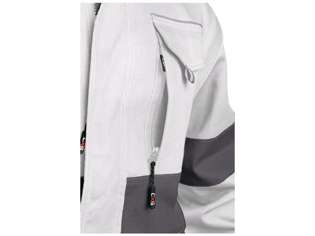 -Skryté náprsné vrecko na zips, jednoduché bočné vrecká, spodná časť na bokoch do gumy.