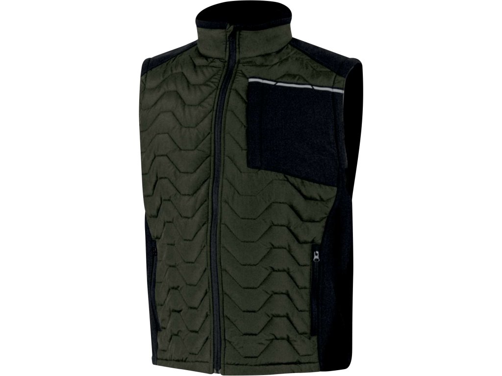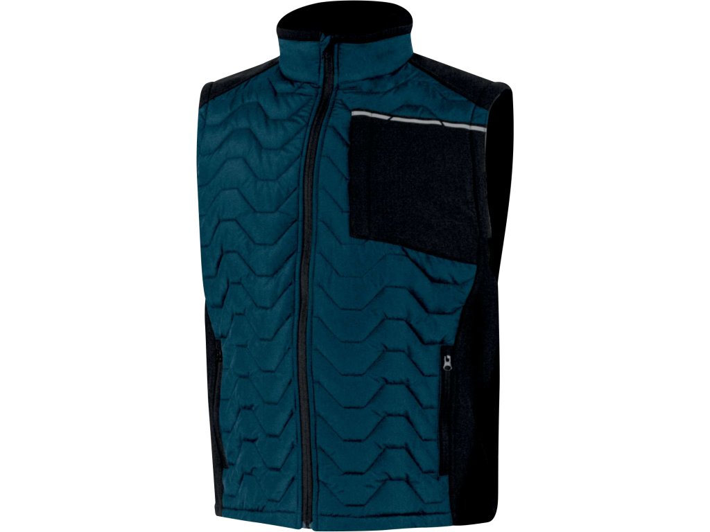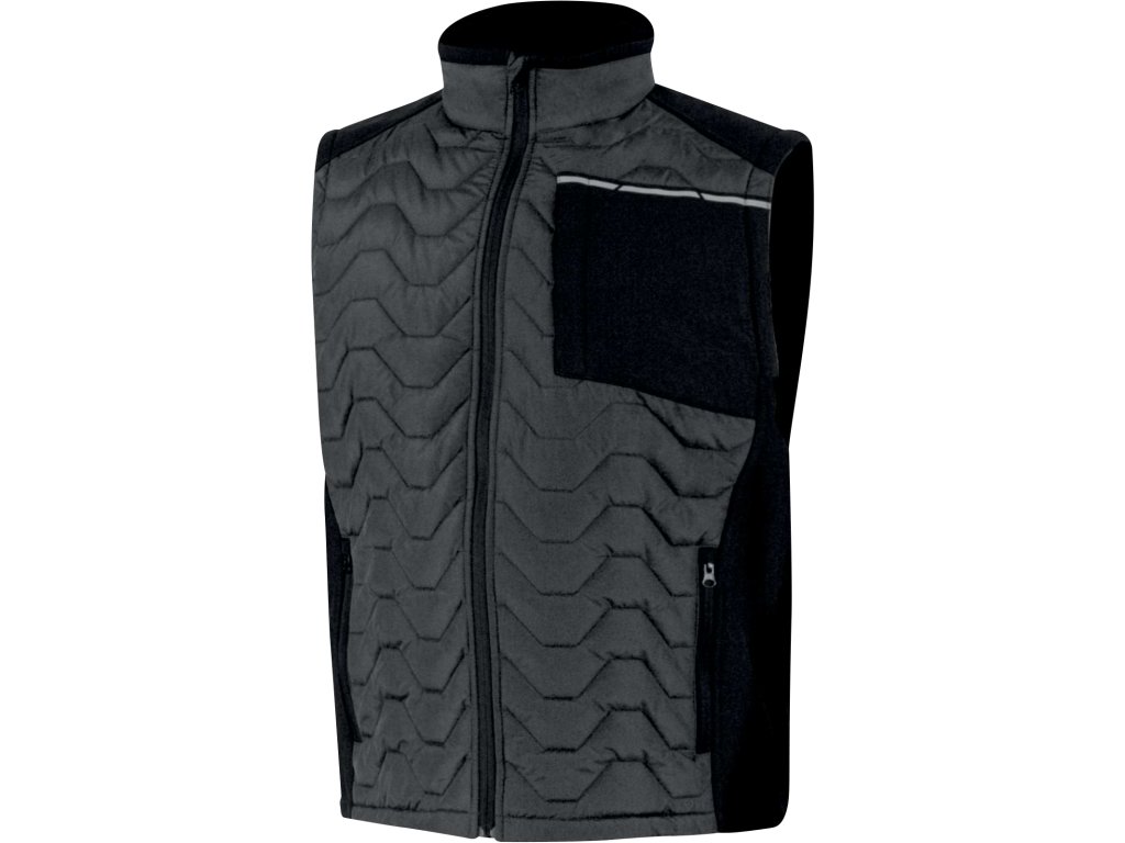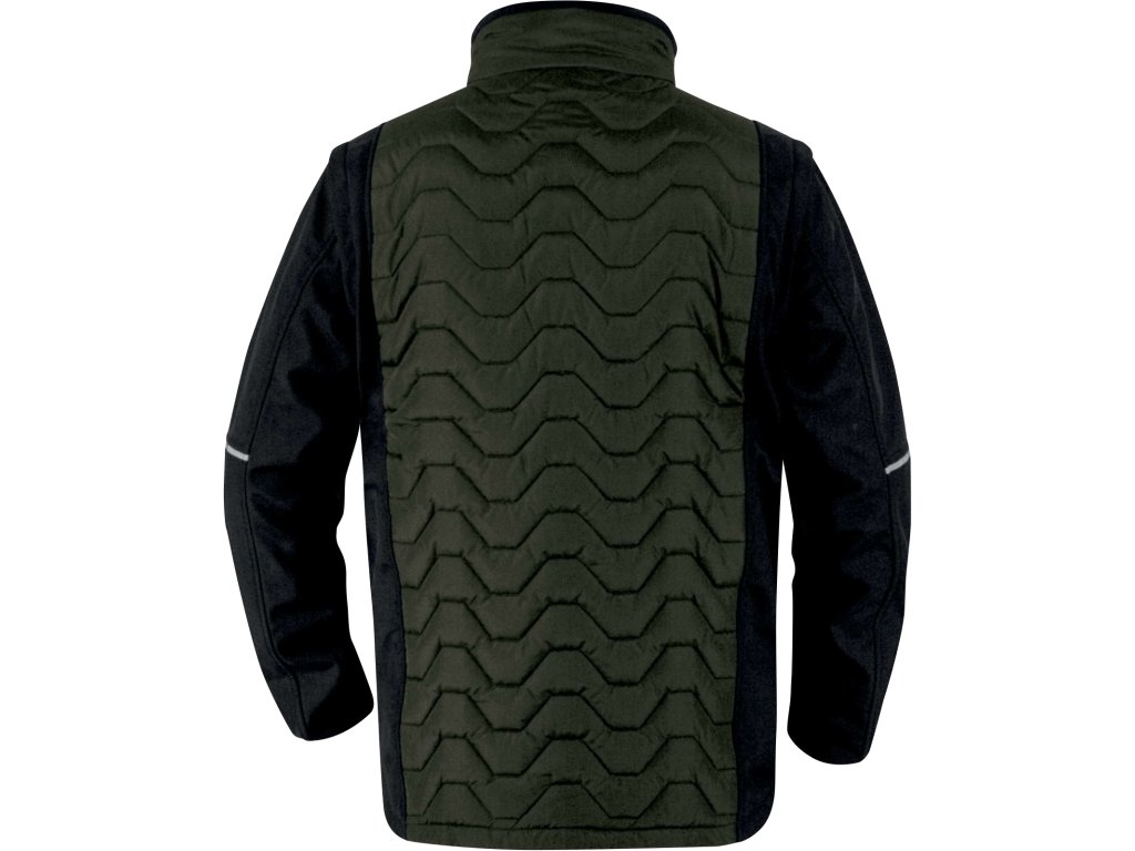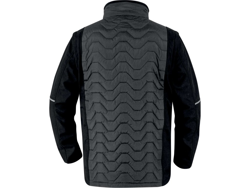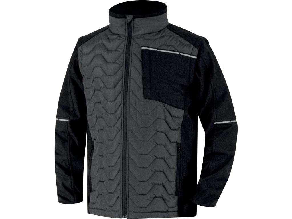 Hybridná bunda 2 v 1 : prešívaný trup pre zabezpečenie tepla, odnímateľné vodoodolné softshell rukávy pre väčšiu voľnosť pohybu.