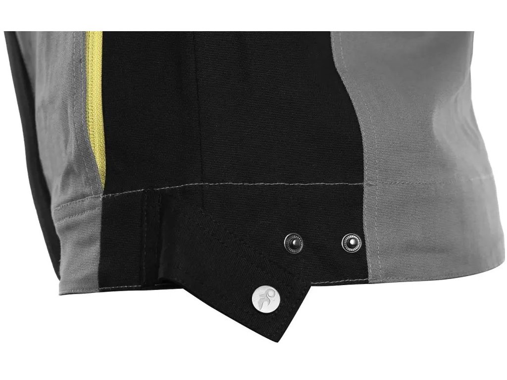 -Vrecko s chlopňou na ľavom rukáve, kryté zapínanie na zips a cvoky, náprsné vrecká - na cvok a zips, bočné vrecká doplnky.