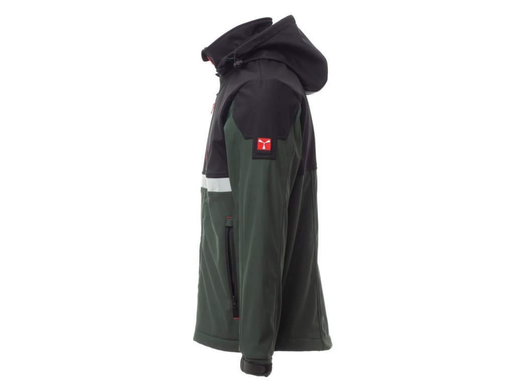 - pánsky 3-vrstvový dvojfarebný softshell, s flísovými vložkami na golieri- bunda s SBS zipsom s kovovým bežcom „semi-auto lock“ a ťahačom s logom