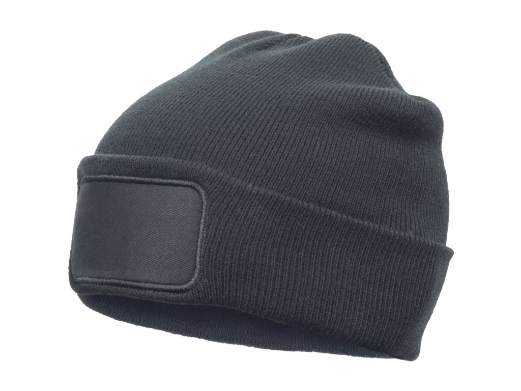 - pletená zimná čiapka s prednou doskou na vyšívanie alebo potlač