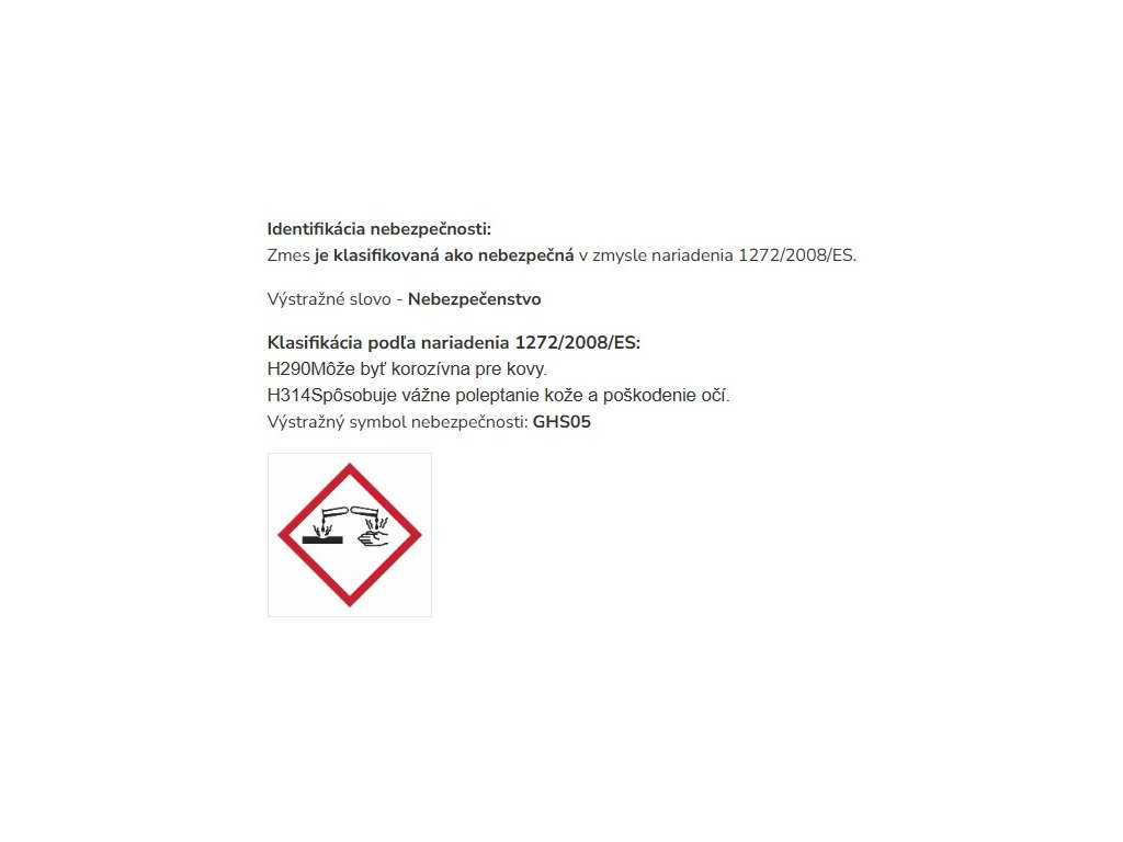 -Nepoužívať na nerezové a chrómované súčasti vodovodných batérií, prostriedok obsahuje kyselinu chlorovodíkovú a mohlo by dôjsť k poškodeniu povrchov.