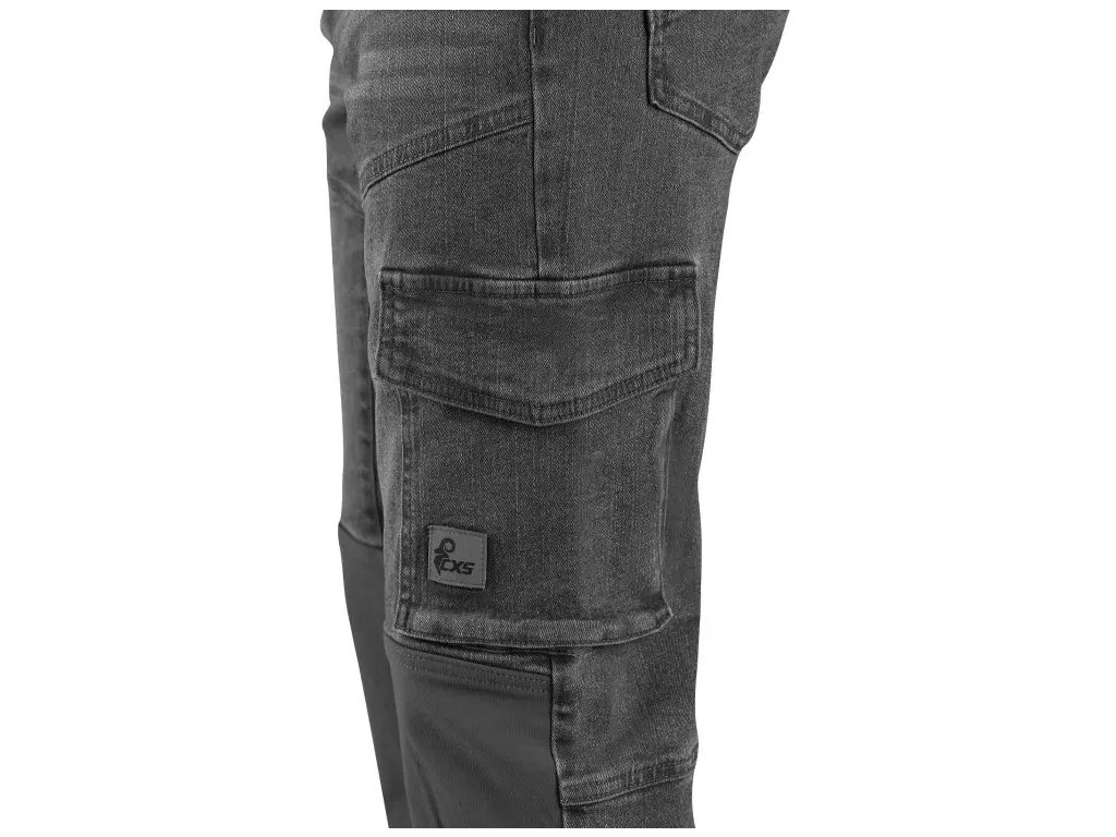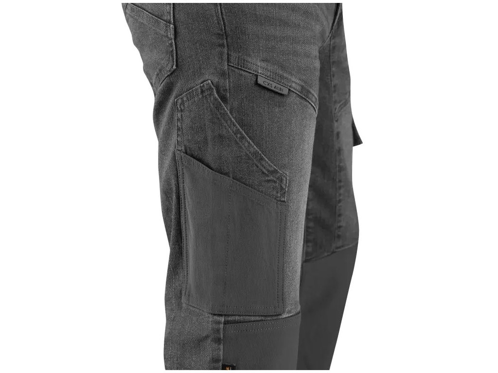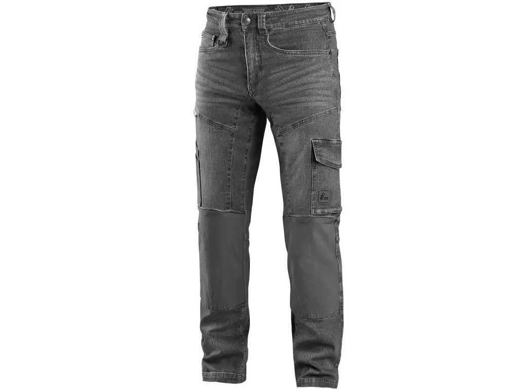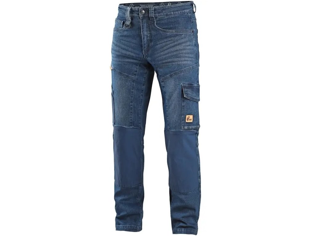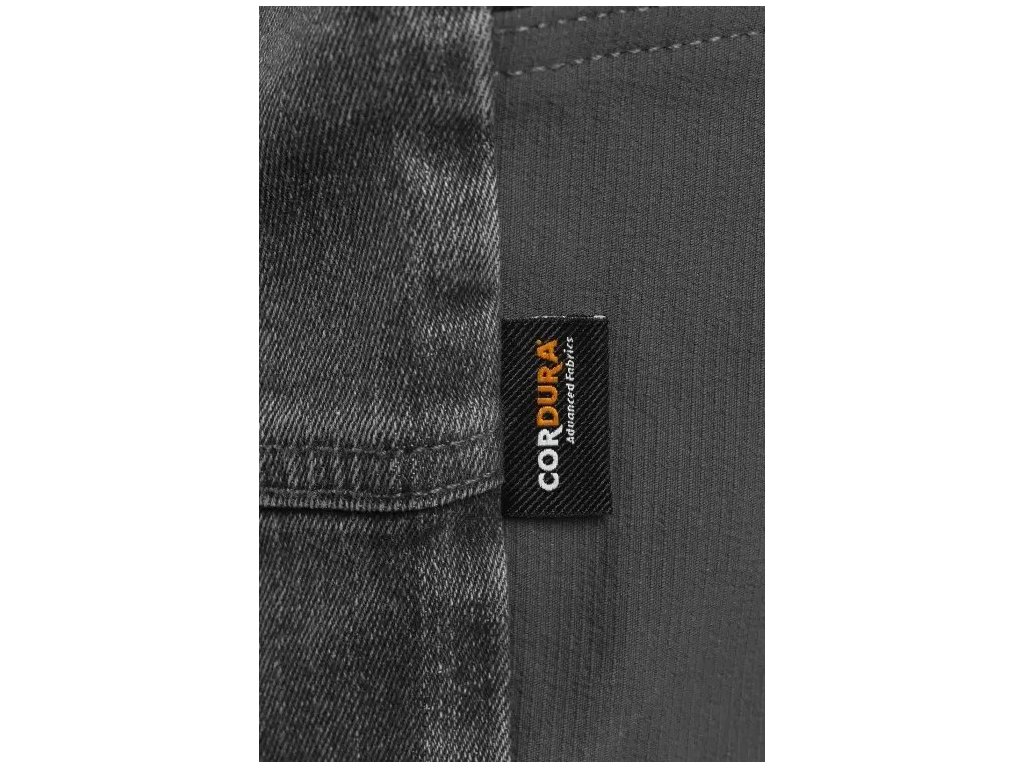 -Exponované miesta sú vystužené materiálom CORDURA®, ktorý je odolný a pritom elastický, a vďaka tomu neobmedzuje v pohybe.-V páse sú pútka na opasok s plastovým príveskom a pútkom na kladivo.