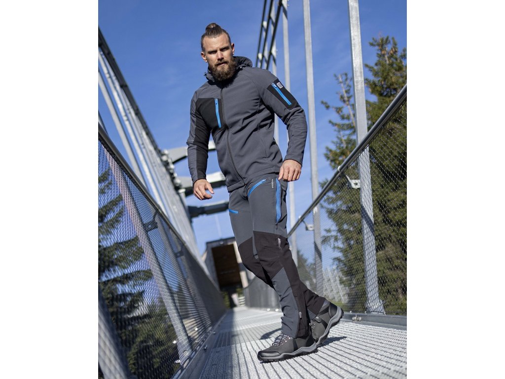 -Štvorsmerne elastický softshell ElasticTech®Active v kombinácii s funkčným tvarovaním nohavíc zaistí skvelé prispôsobenie pohybu.-Nohavice sú vhodné aj do náročných klimatických podmienok, sú vodoodpudivé a súčasne priedušné.