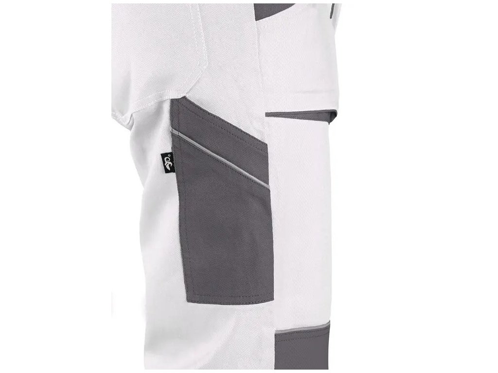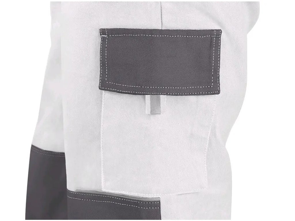 -Zdvojené kolená, zadné vrecko s chlopňou, traky s gumou vzadu.