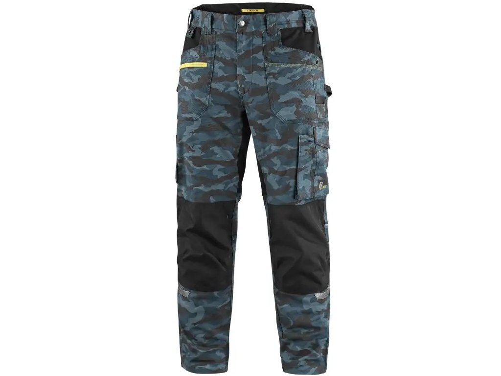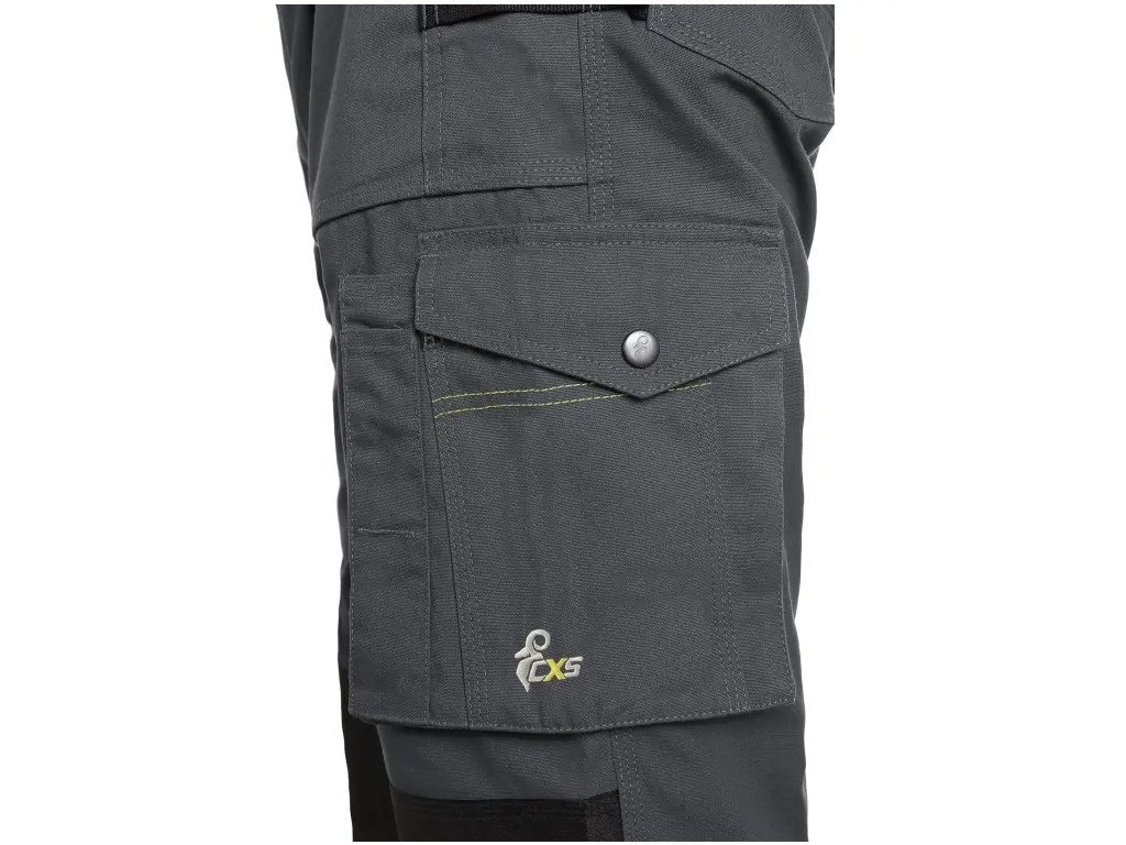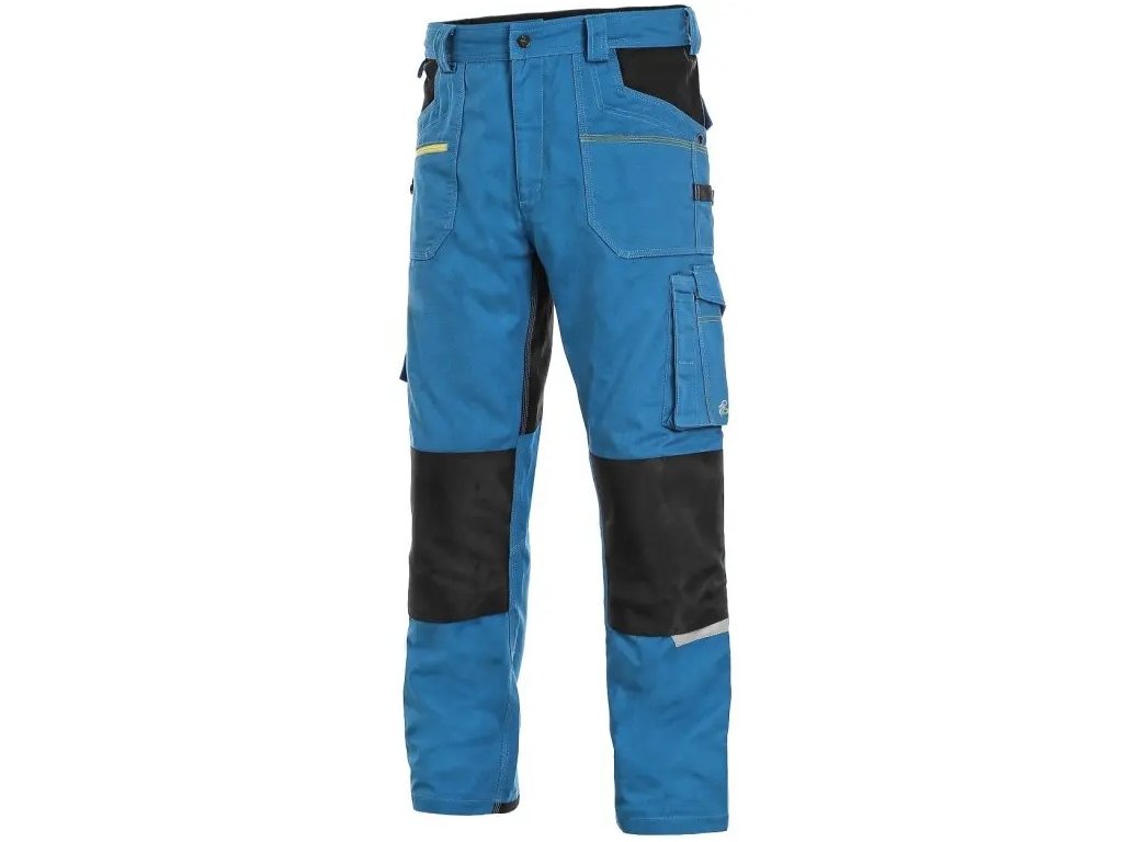 -Strečová tkanina umožňujúca voľný pohyb.-Pás s pútkami na opasok, predné vrecká s vreckom na zips.