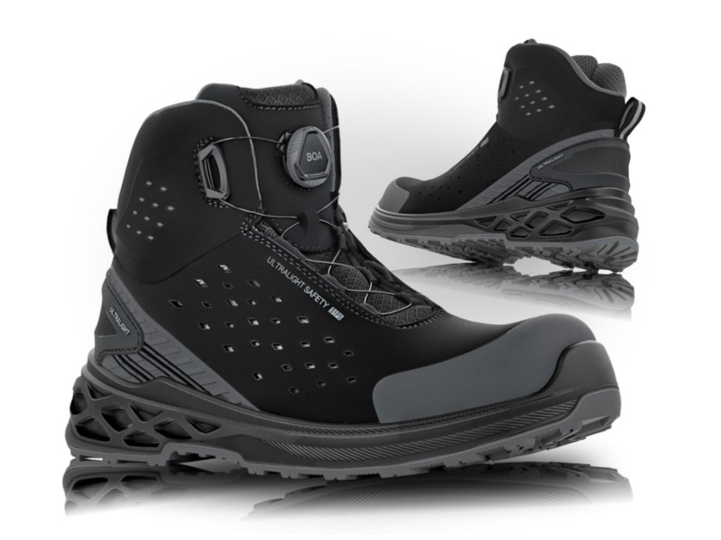 Obuv s vystuženou špicou.Prevedenie S1 PS FO ESD SR – s kompozitnou tužinkou a kevlarovou planžetou, antistatické vlastnosti ESD, powered by BOA® Fit System