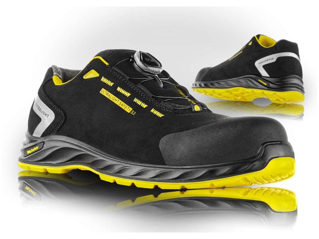 Obuv s vystuženou špicou.Prevedenie S3 ESD SRC – s plastovou tužinkou a kevlarovou planžetou, hydrofóbne – antistatické vlastnosti ESD, Boa® Fit System