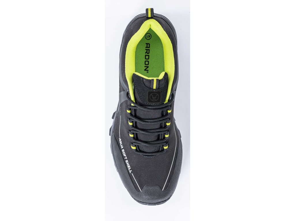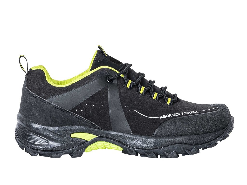 Softshellová poltopánka v čiernej farbe s reflexnými detailmi.