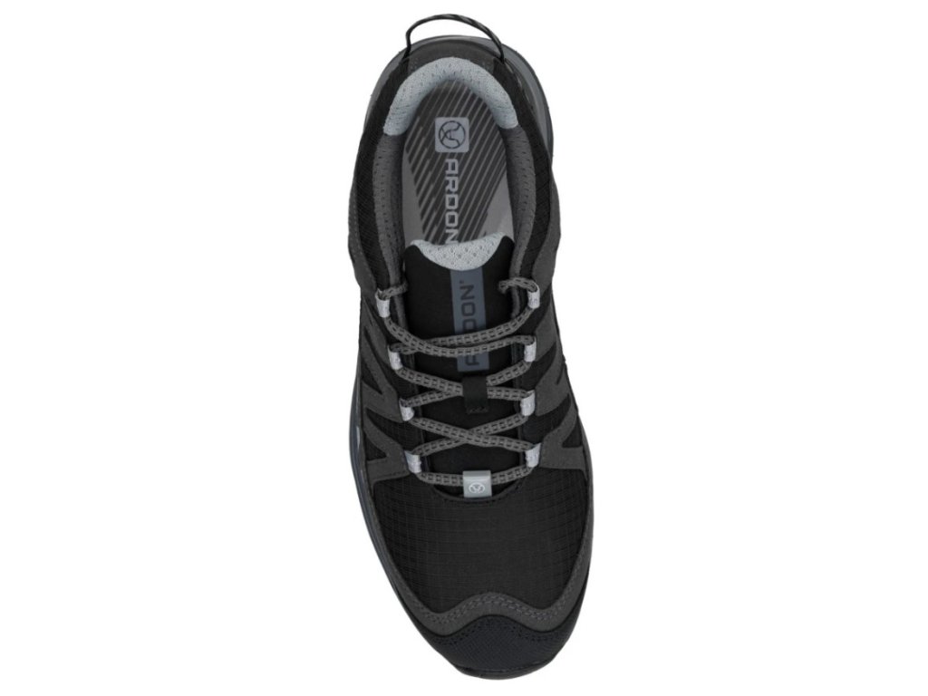 -Zvršok obuvi je vyrobený z kombinácie vodeodolného textilu a mikrovlákna, čo zaisťuje vysokú odolnosť a zároveň priedušnosť.