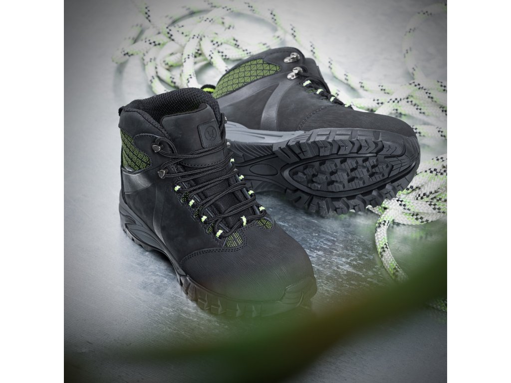 Obuv s vystuženou špicou.Pre zvýšený komfort je obuv vybavená vkladacou, anatomicky tvarovanou stielkou tlmiacou nárazy v oblasti päty.