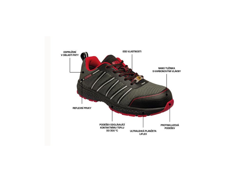 Obuv s vystuženou špicou.- so svojimi ESD vlastnosťami je topánka vhodná do EPA priestorov