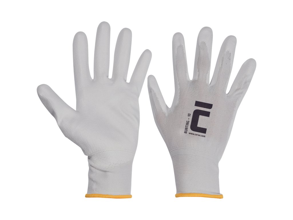 -Pletené bezšvíkové nylonové rukavice s tenkou vrstvou polyuretánu v dlani a na prstoch.-Pružná manžeta.