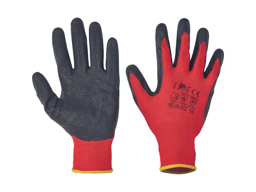 -Máčané v čiernom latexe na dlani a na prstoch.-Pružná manžeta.