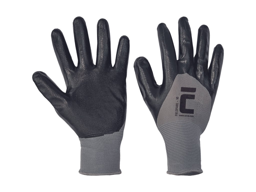 -Pletené bezšvové rukavice máčané do 3/4 v čiernom nitrile na dlani a prstoch.-Pružný náplet.
