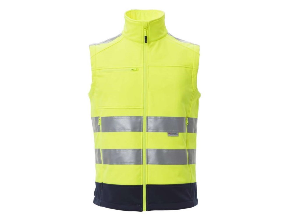 - pánska ergonomická dvojfarebná vesta s vysokou viditeľnosťou s reflexnými pruhmi 3M- utesnený celozips SBS